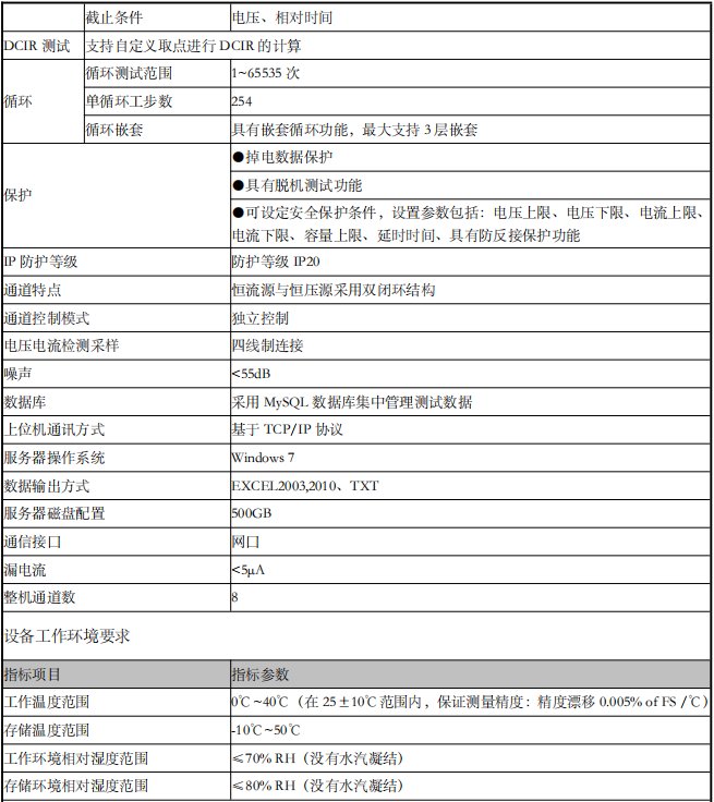 容量测试项目 | 充电容量,放电容量,容量衰减 | ||