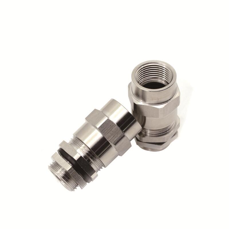 產品說明 :本公司的不锈钢电缆接头采用304不锈钢材质精制而成,具有独特的防爆功能,特殊夹紧爪与夹紧圈之设计,夹紧电缆范围大,抗拉力特强,可防水、防尘、抗盐、耐弱酸、酒精、油、油脂及一般溶剂。防爆作用广泛被使用在防爆电器,中石化,化工等行业,不锈钢电缆接头防爆认证齐全。