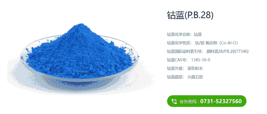 钴蓝具有一种独特的红光蓝色:色调鲜明,色泽艳丽,易分散;