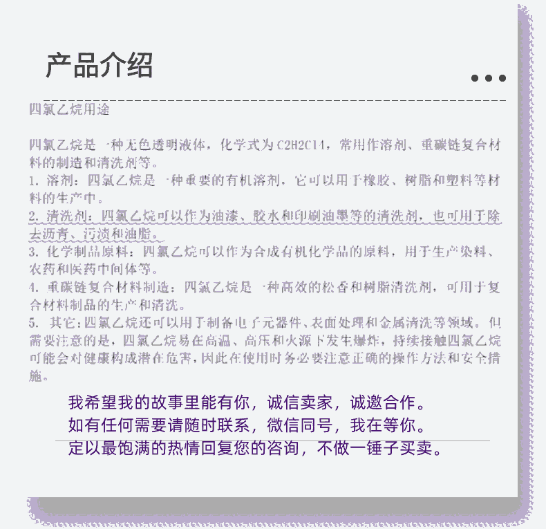 能为您提供一次满意的采购体验,是我们全体员工矢志不渝的奋斗目标,在竞争如此激烈的市场环境中,只有做到不忘初心,艰苦奋斗,把客户利益放在心里才能生存下来,我司已经在化工行业摸爬滚打十余年,靠的就是坚决秉承公司信誉至上的经营理念,日积月累,才沉淀了如此之多的优质客户。十年来,我们与客户同吃苦,共进退,一起抵御市场经济的严峻考验,同时也与客户们建立了不可动摇的互相信任的根基和感情,因为我司全体员工知道,无论何时,我们和客户都是一个不可分割的整体,为客户着想就是为自己的发展着想。路漫漫兮修远兮,吾将上下而求索。这就是我公司对所有新老客户的庄严承诺。