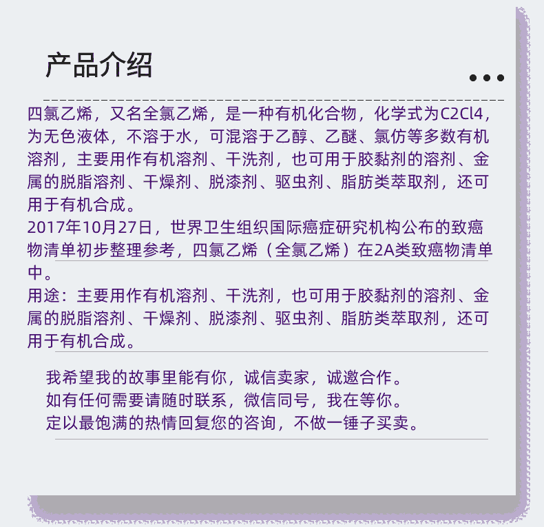 别 名全氯乙烯化学式C2Cl4分子量165.833