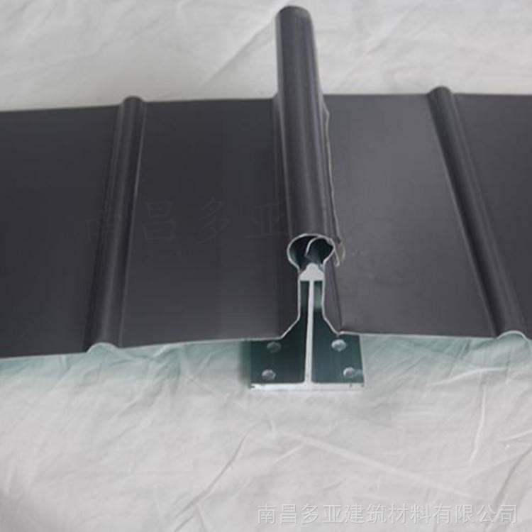 屋面板块的连接办法是采用其特有的铝合金固定支座,板块与板块的直立锁边咬合形成密合的连接,这种板块的咬合过程无须人力,完全由机械自动完成,而咬合边与支座形成的连接办法可解决因热胀冷缩所产生的板块应力,该优势反映在可制作纵向超长尺寸的板块而不因应力影响变形。同时本屋面系统完整齐全的附件供应可满足各种建筑形式的要求。