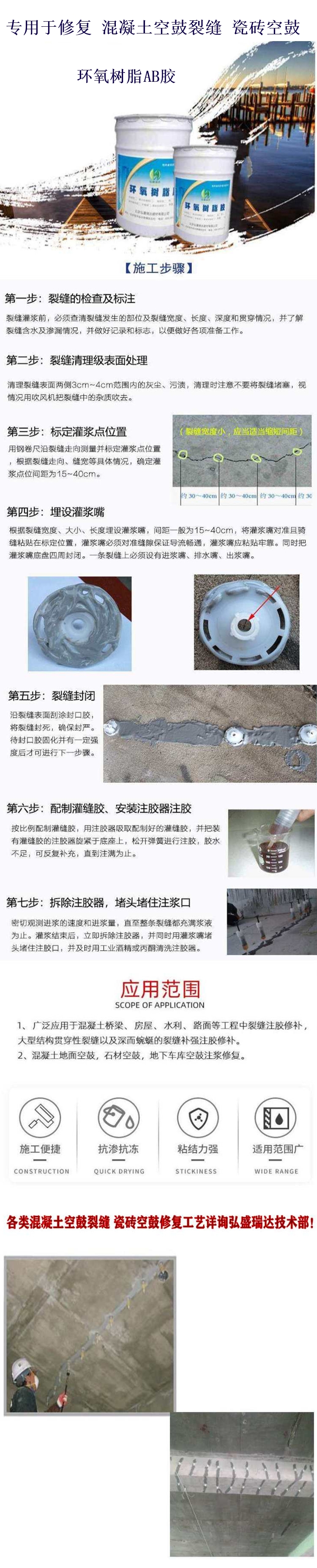 适用于(桥梁裂缝修补、楼板裂缝修补加固、地平裂缝空鼓、瓷砖空鼓等)
