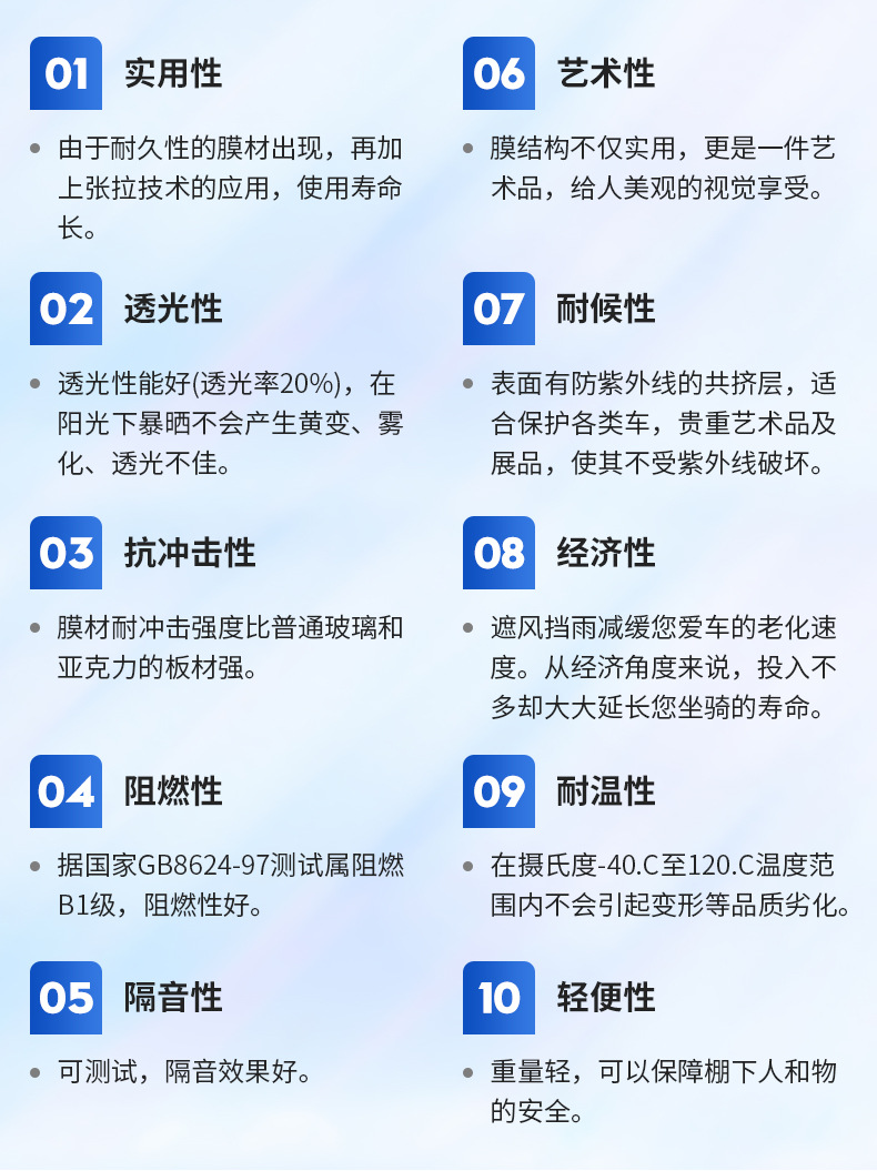 3.膜结构系列产品、张拉膜系列产品定制需要签订正式合同,明确款式、规格、颜色、及工期,违约责任及赔付。