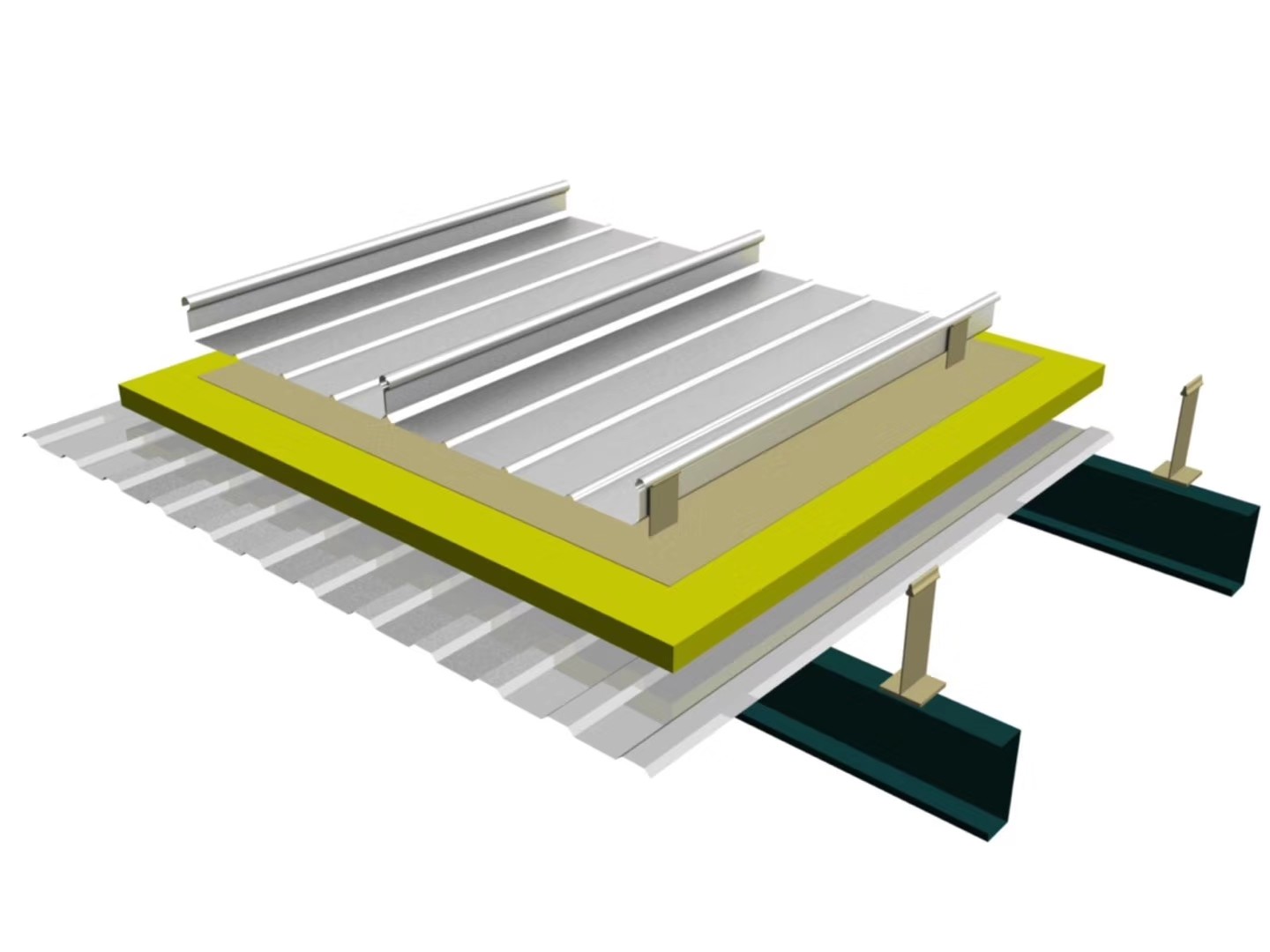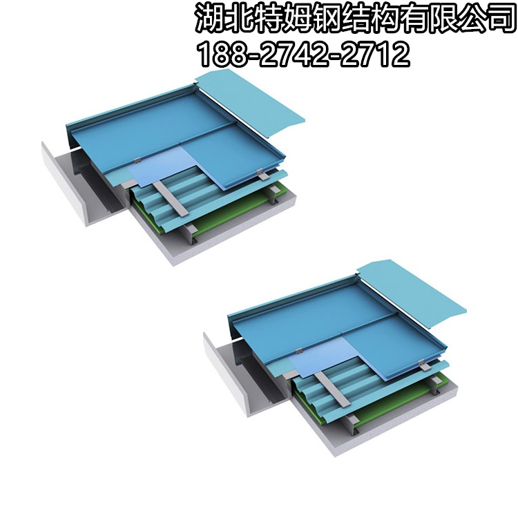 3、屋盖变形。铝镁锰合金屋面板在大温差情况下的热胀冷缩是不可避免的客观规律,本屋面系统总结多年来的使用经验,通过滑动式的T码支座,将铝板的热胀冷缩平均分配同步涨缩,使巨大的温度应力通过适当的涨缩得以舒缓,而不会将板块挤压变形或拉裂;保证整体系统在长达50年的使用过程中安全地工作。本屋面系统单块板块的长度可达120M,板块与板块之间无任何潜在漏水的搭接缝,充分保证完全的防水。排烟口、天窗、管线的出口可直接穿出,附件均可使用特殊工艺保证水密性。隐藏的本屋面系统支座,稳固的支承板块结构,无须穿出屋面表层,风、霜、雨、雪、负风压的荷载都被安全的吸收。本屋面系统有效的分解大温差在屋面形成的应力,即使超长板块也有足够的胀缩空间,而不会将结构挤压或张拉变形。