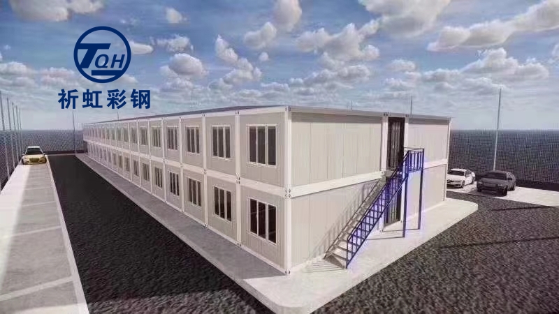 祈虹彩钢钢构打包箱房由顶框组件、底框组件、角柱和若干块可互换墙板组成,采用模块化设计理念和生产技术,把一个箱房模块化成的零部件,到受用地再现场组装或吊装落位即可。该产品以箱体为基本单元,箱体结构采用特殊冷弯镀锌型钢构件,围护保温材料部采用不燃材料,水暖电气、装饰装潢以及配套功能部在工厂预制完成,不需要二次施工,现场组装或者整体吊装落位即可入住。可单独使用,也可通过水平及竖直方向的不同组合形成宽敞的使用空间和叠层。