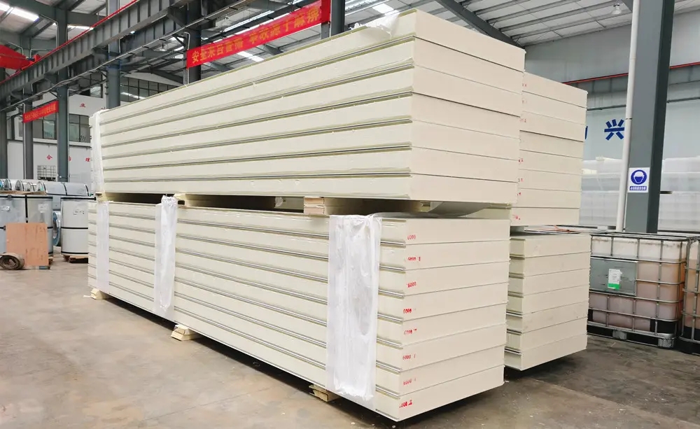 以 聚氨酯(PU)泡沫 为芯材,两侧覆以 彩涂钢板、不锈钢板或铝箔 等面板,经连续化生产线复合而成的 夹芯板材。具有 高效保温、轻质高强、密封性好 等特点,广泛应用于工业建筑、冷库、洁净车间等场景。