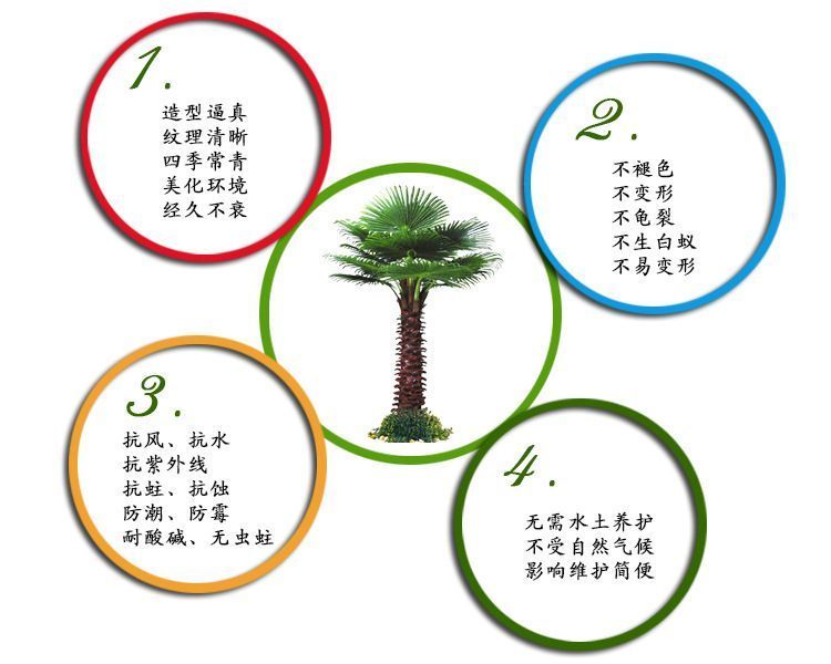 叶片跟踪服务2年,出厂2年内不断枝、不掉叶,一般可使用5—6年。树干跟踪服务3