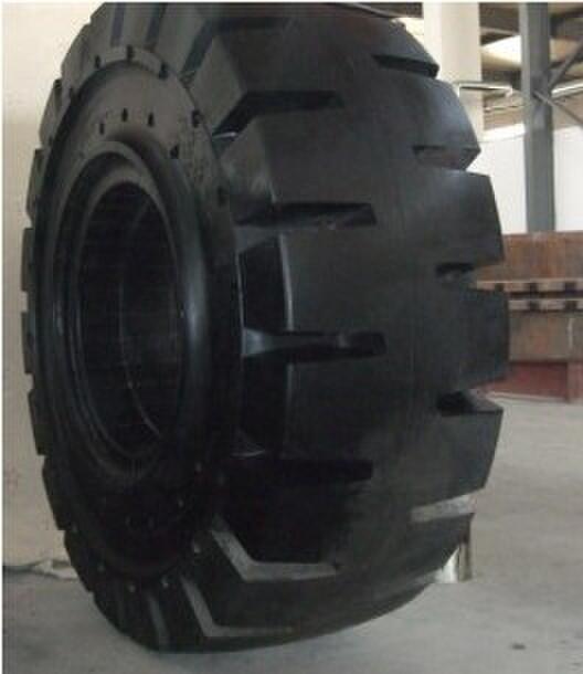 ??二、合理的结构设计,保证轮胎具有较好的使用性能 实心轮胎采用先进的三段式结构设计,三种胶料分别保证了轮胎的整体性能。高刚性、高强度的基部胶及钢环支撑,既保证了轮胎的挺性,又确保轮胎与轮辋的紧固性,根本上消除了E3花纹轮胎的滑圈问题;高弹性的中间胶,有效地吸纳了车辆运行时产生的震动,具有舒适的驾乘性,同时避免了对车辆的损坏;加厚的胎面胶层,保证了轮胎的耐撕耐磨性能,提高了实心轮胎的使用寿命;另外,我公司生产的高性能无印痕实心轮胎,因其采用浅色(彩色)配方设计,做到了运行刹车无印痕,环保洁净,特别适用于环保卫生条件要求较为严格的食品、电子、医药等行业,此项科技成果已通过国家科技部门鉴定。