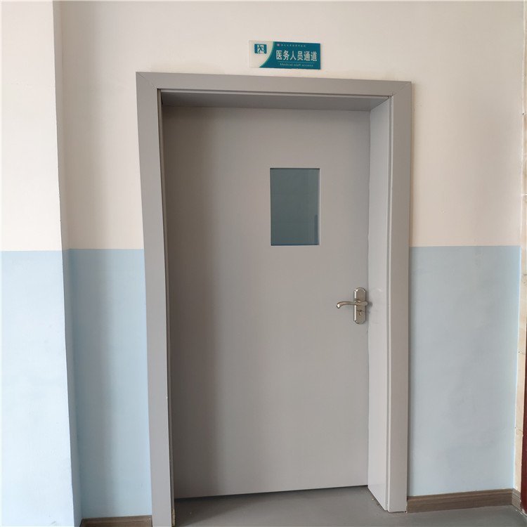 4.手术室门通常对气密性和洁净度有较高的要求,门扇内部采用阻燃纸蜂窝填充,高强度铝合金门框,并由自动升降液压设备大平台压制成型。