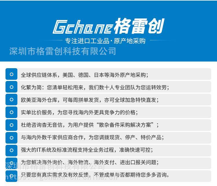 深圳市格雷创科技有限公司主营产品及服务特色为“进口工业品?源头采购”,尤其是偏门品类工业品瑞士GHIELMETTI开关、GHIELMETTI变送器、GHIELMETTI编码器、GHIELMETTI信号分配器、GHIELMETTI交叉开关、GHIELMETTI开关、GHIELMETTI变送器、GHIELMETTI编码器、GHIELMETTI路由系统、GHIELMETTI配线架、GHIELMETTI备件和项目用料等。