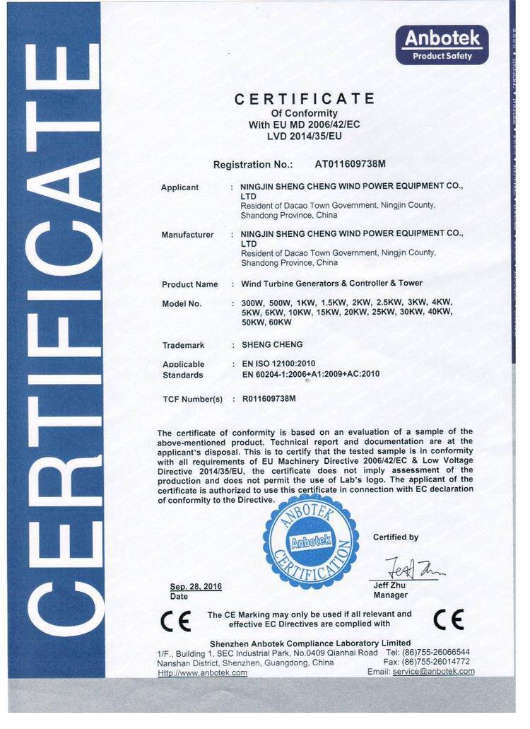 ? 晟成风电设备有限公司是以风能应用和机电一体化技术为主导的 企业,曾获得过多项部级荣誉证书,并通过ISO9000质理体系认证、CE认证。公司内部拥有 组织机构和雄厚的技术力量具有不断研究科技新产品的能力拥有同行业 的加工设备、检测设备及检测手段,更有 的高素质设计、生产、施工队伍。公司致力于300W-30KW风力发电机和成套设备,以及工业自动化控制系统研发生产和销售,经过多年的不断改进和完善公司产品已得到世界50多个和地区客户的认可。
