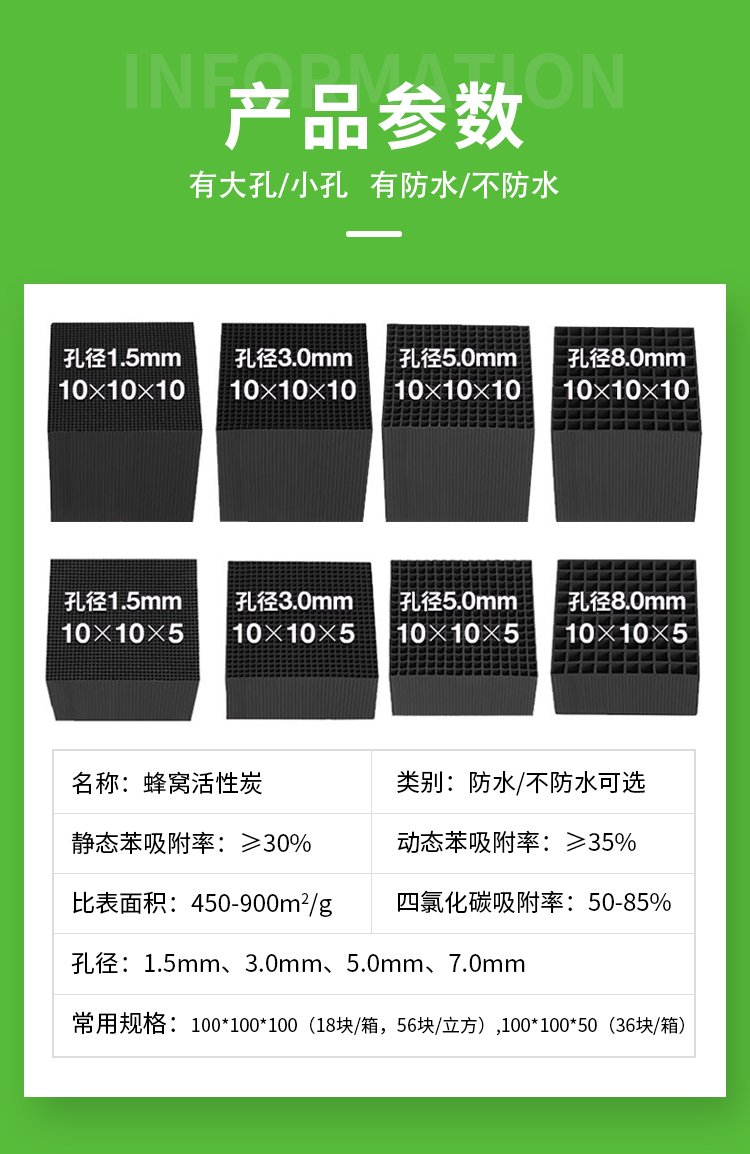产品类型 | 防水蜂窝活性炭 | ||
