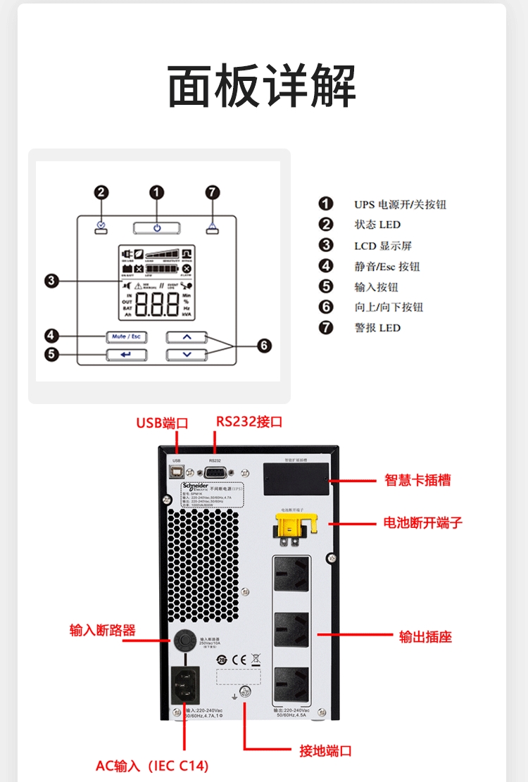 全新APC施耐德SUA1500ICH互动式UPS电源1.5KVA标配可延时10分钟
