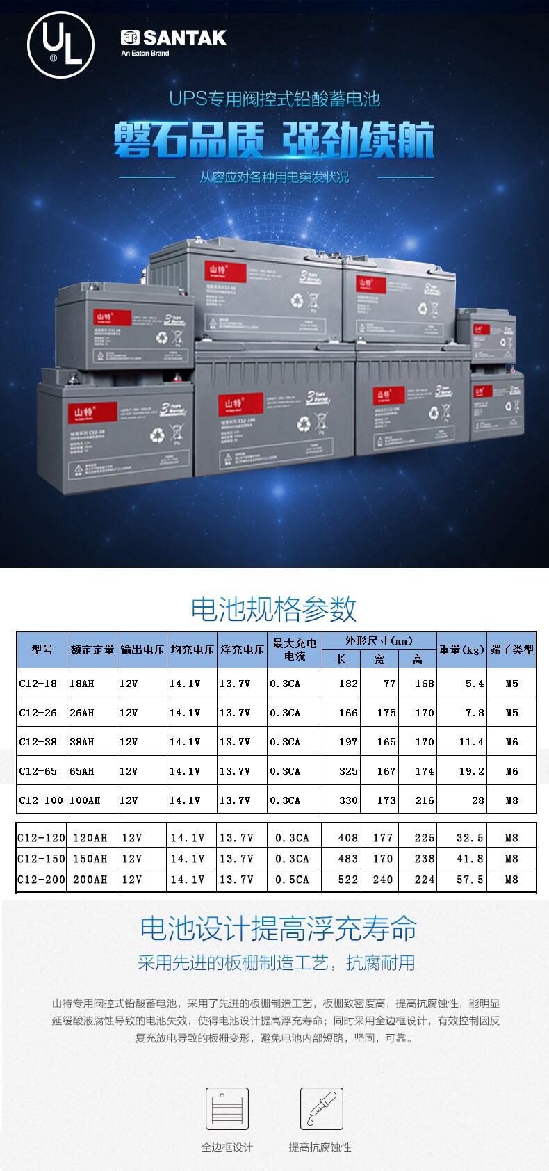 山特蓄电池12V65AHC1265铅酸免维护UPSEPS直流屏机房应急电源