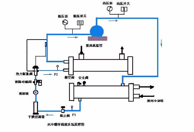 冷水机以螺杆压缩机为主机设计,工业上螺杆式冷水机组技术成熟,广泛用于化工、制药、食品、冷冻、工程建设等,典型制冷量范围为700到1000kW。
