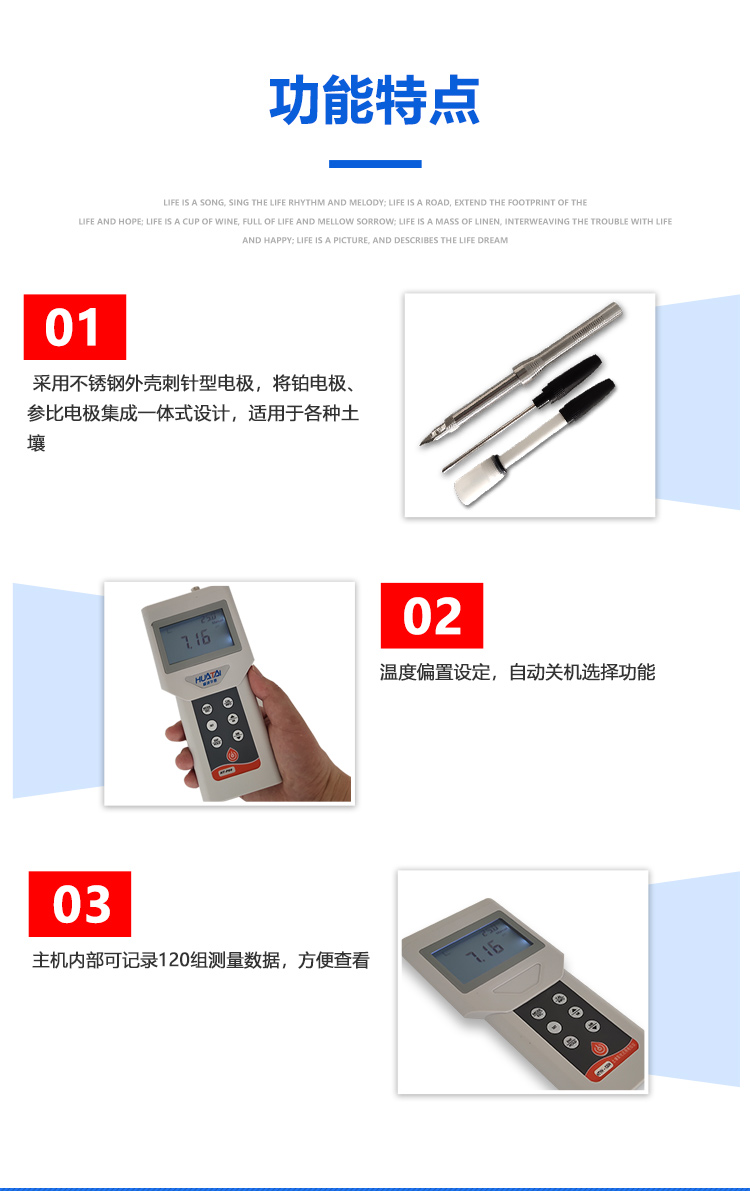 配套电极 | 土壤氧化还原电极(不锈钢外壳刺针型) pH电极 温度传感器 | ||