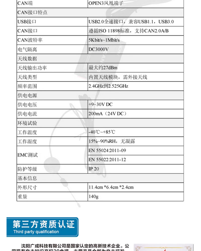 CAN 波特率设置范围 | 5Kbit/s至1Mbit/s | ||