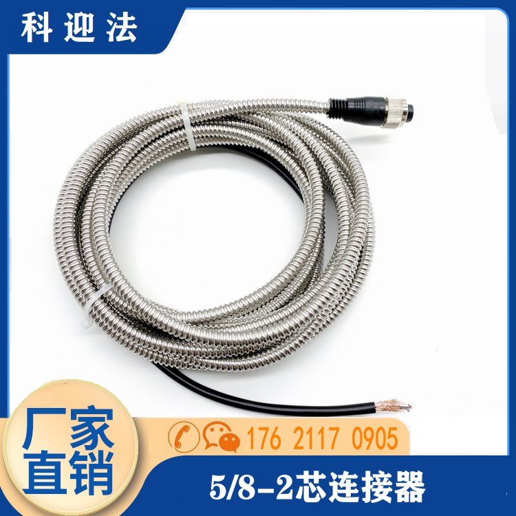 5/8-24UNF2芯加速度振动传感器连接器带铠装波纹管线束2孔插头 品牌 | 科迎法 | ||