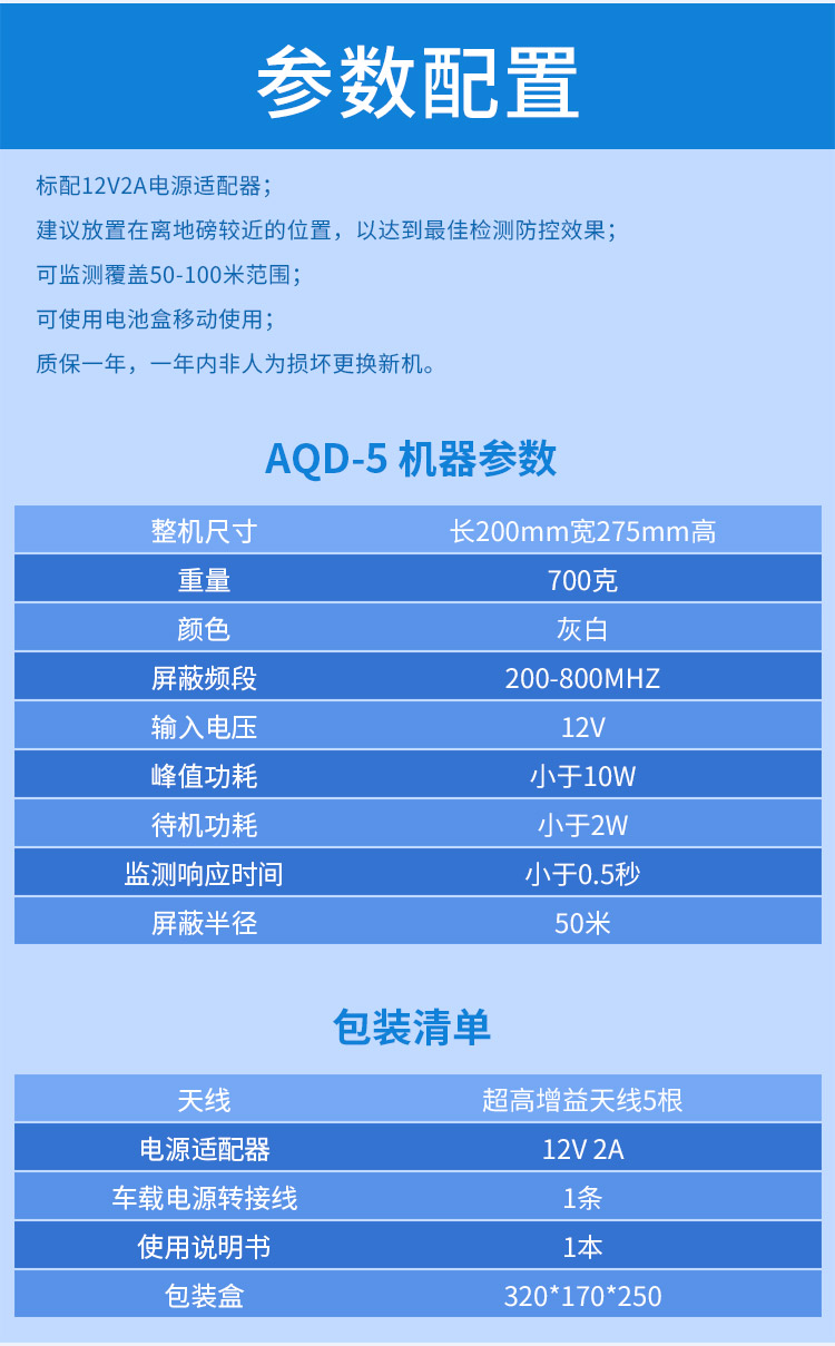配套包装 | 主机,5根天线,电源适配器,车载电源线 | ||