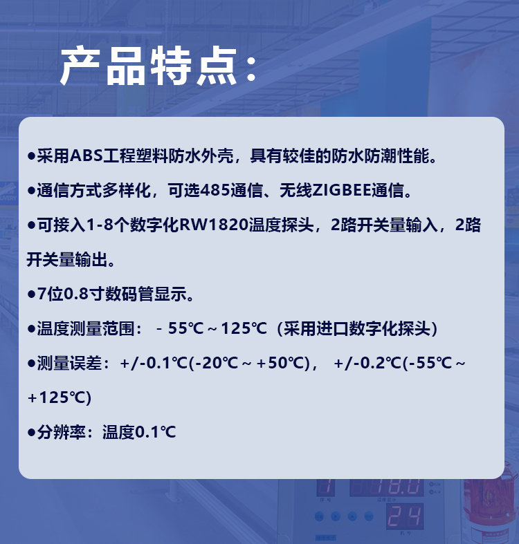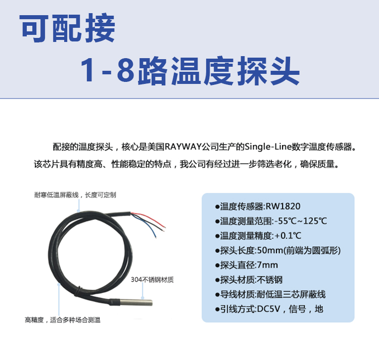 可配接 | 1-8个数字化RW1820温度探头 | ||