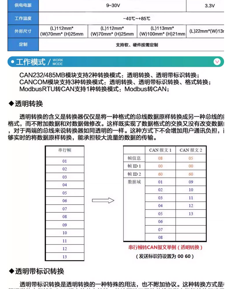 转换方向 | 双向转换、仅CAN→串口、仅串口→CAN | ||
