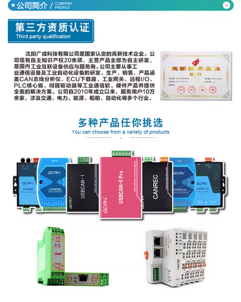 广成双通道CANBUS分析仪USBCANIIC 自识别波特率支持GCANTOOLS