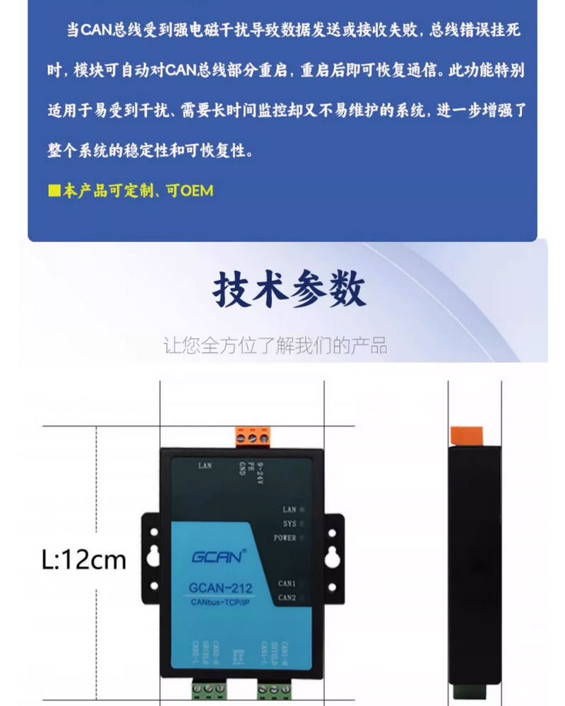 广成GCAN-212-B以太网转CAN收发器 支持TCP/UDP通讯 兼容SOCKET 国产 型号 | GCAN-212-B | ||