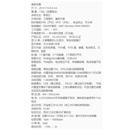 测量范围 | 10.6eV1ppb~10000ppmN | ||