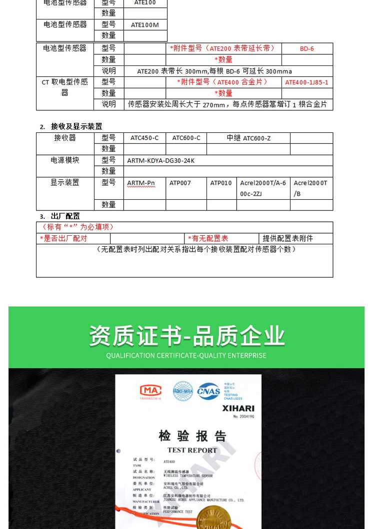 类型 | 无源无线测温装置 | ||