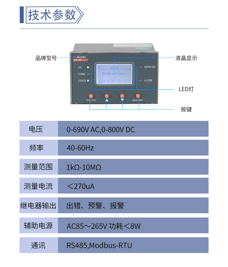 通讯 | RS485 接口,Modbus-RTU 协议 | ||