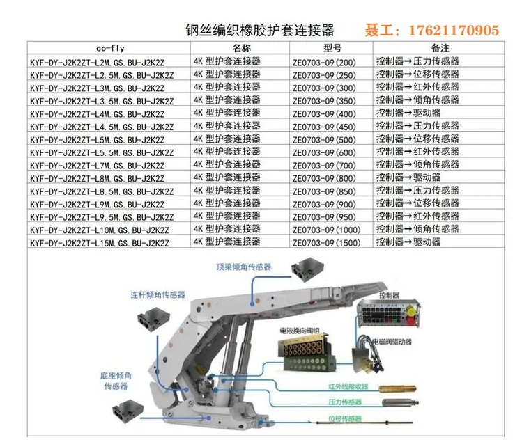 4K型控制器到压力传感器钢丝编织护套连接器ZE0703-09(250)