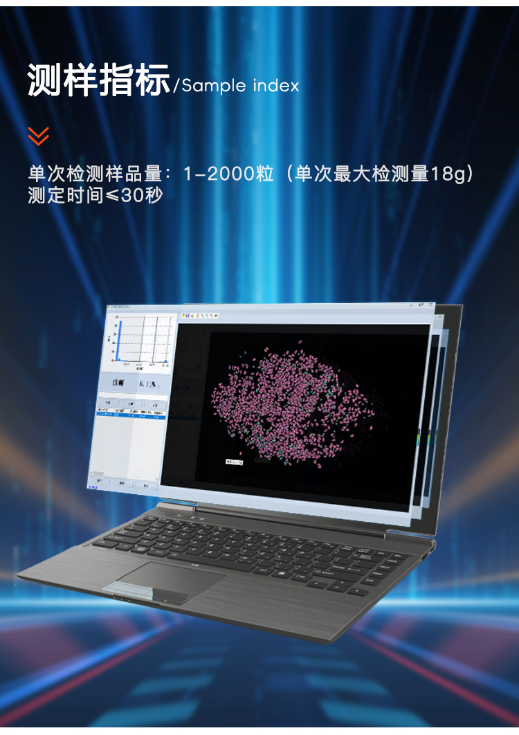 单次检测样品量 | 1-2000粒 | ||