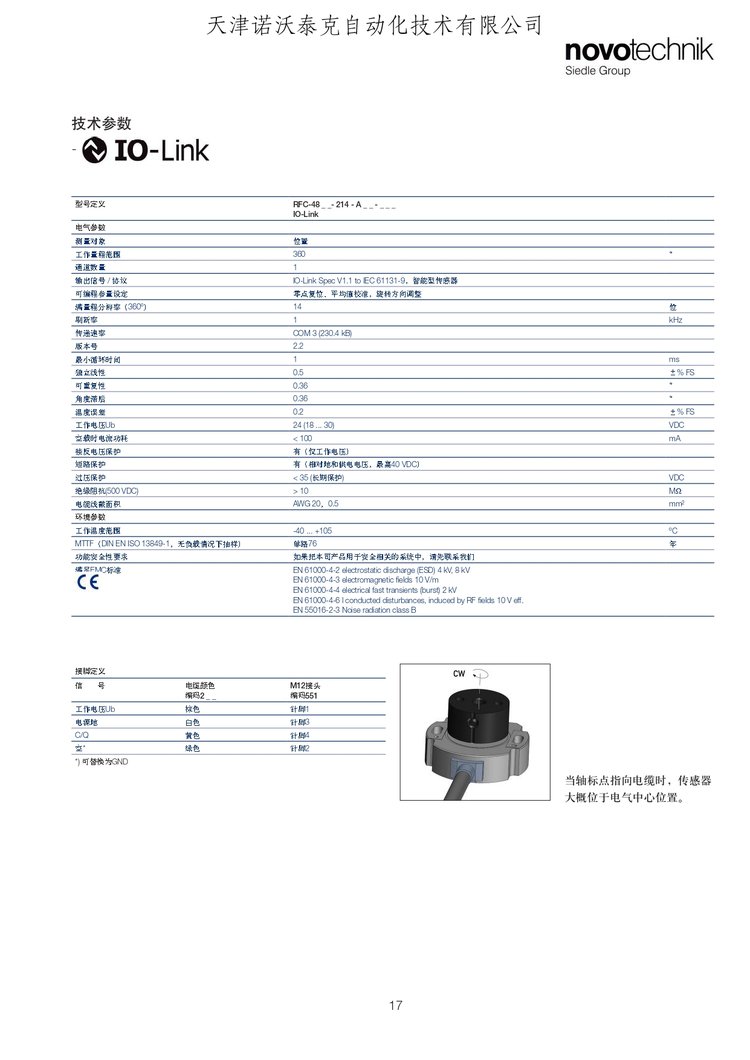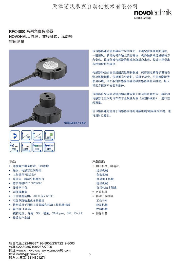 诺沃泰克塑胶切割车辆RFC4800系列角度传感器