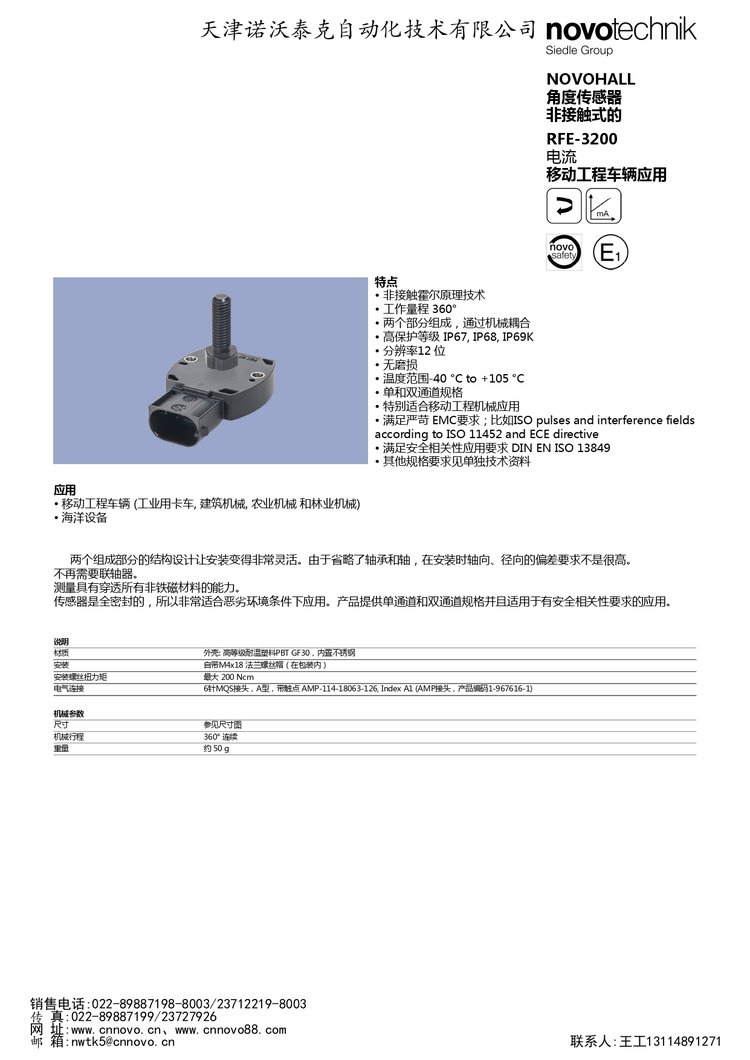 诺沃泰克塑胶切割车辆RFE-3200电流角度非接触式传感器