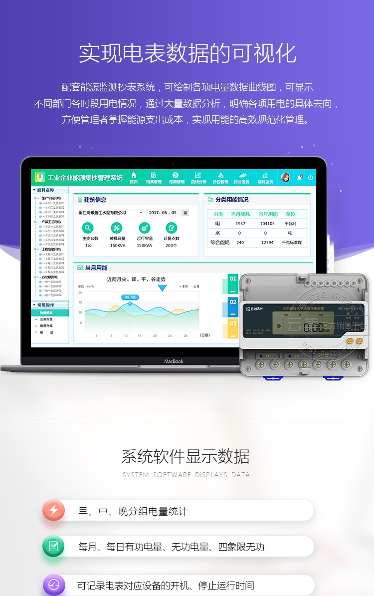可分时计量尖、峰、平、谷各时段电量,时段、费率设置;