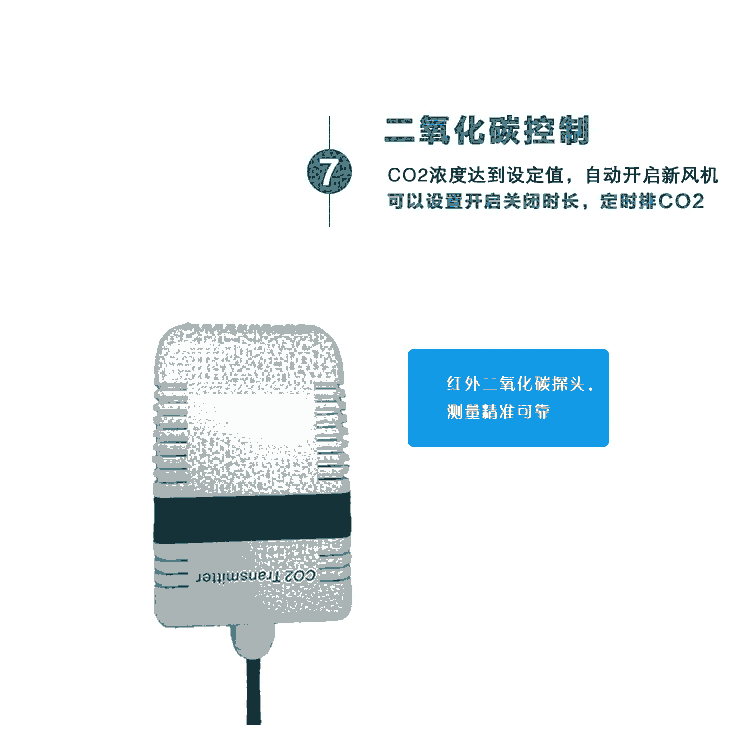 n 温度、湿度、二氧化碳采用工业级探头,响应速度快,传输距离远,抗干扰性强。