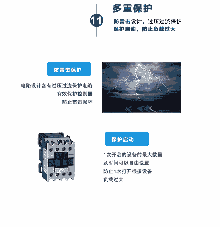 n 过压、过流、防雷击保护电路设计,使用寿命更长。