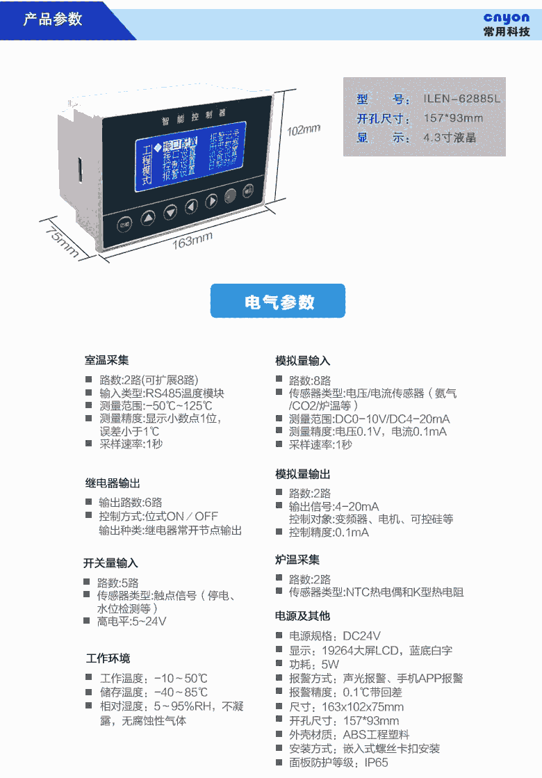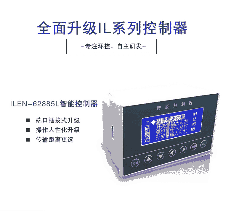 升级版IL系列微电脑智能控制器通过高精度探头采集环境中各项参数,经过控制器的逻辑运算,自动控制升温、降温、加湿、除湿、通风等设备,从而使环境保持在一种恒定的状态,当环境异常,及时报警,适用于农业生产(大棚温室、畜牧养殖、食用菇房、自动灌溉、花卉培育),暖通系统(冷库冷藏、档案馆、博物馆、通讯机房等)、科学实验、工业过程(厂矿、车间)控制等领域。