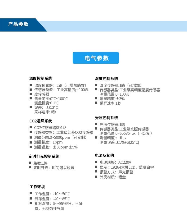 公司的产品包括养殖环控器、大棚种植控制器、温湿度控制仪、环境控制器、新风控制器、菇棚控制器、锅炉控制器、温湿度变送器、二氧化碳变送器、光照变送器、土壤温湿度变送器、土壤EC值变送器、土壤PH值变送器等,工业级设计,性能稳定可靠。
