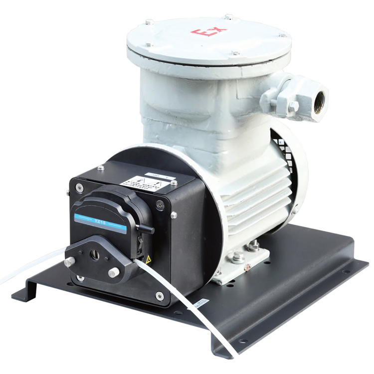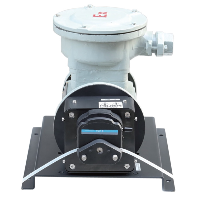 采用工业级交流变频防爆电机(ExdIIBT4)驱动,配合大流量泵头,安全可靠外置变频器控制,具有调速、启停、正反转、模拟量调速、RS485通讯等功能,泵头滚轮采用行星齿轮传输。