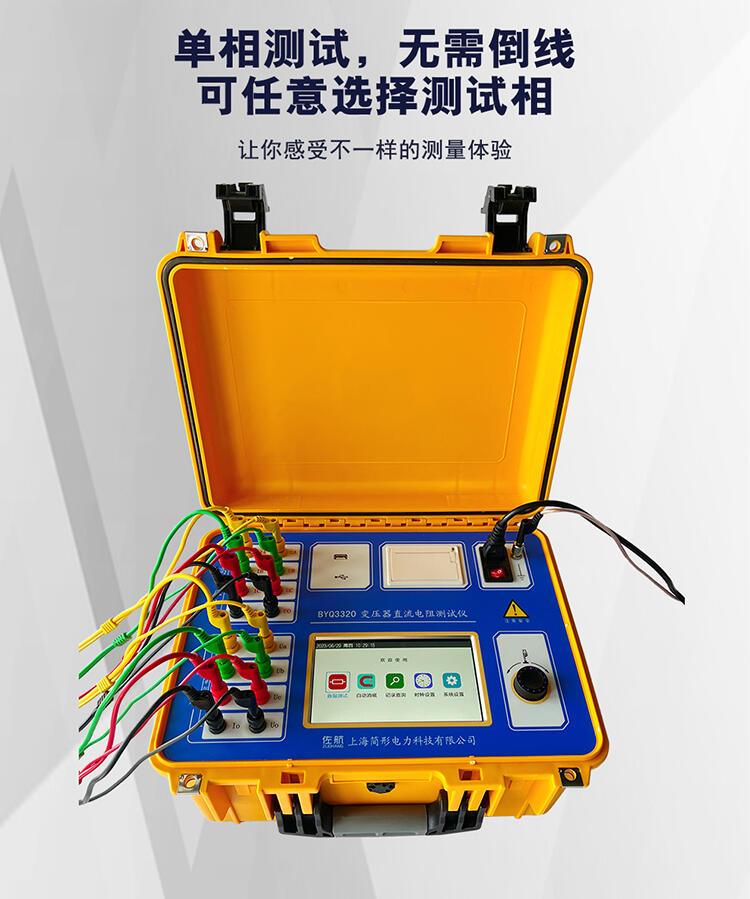 变压器的直流电阻是变压器制造中半成品、成品出厂试验、安装、交接试验及电力部门预防性试验的必测项目,能有效发现变压器线圈的选材、焊接、连接部位松动、缺股、断线等制造缺陷和运行后存在的隐患。为了满足变压器直流电阻快速测量的需要,我公司利用自身技术优势研制了变压器直流电阻测试仪。该仪器是集助磁法测试、三相测试(Yn,Y、△)和消磁功能于一体的新一代快速测试仪,是测量大型电力变压器直流电阻的理想设备。屏幕采用真彩色大屏幕高分辨率液晶显示屏,触控加飞梭旋钮操作,方便现场使用。具有中文菜单提示功能,操作简便直观,一次接线完成所有直阻测试项目,测试速度快,准确度高,量程宽。