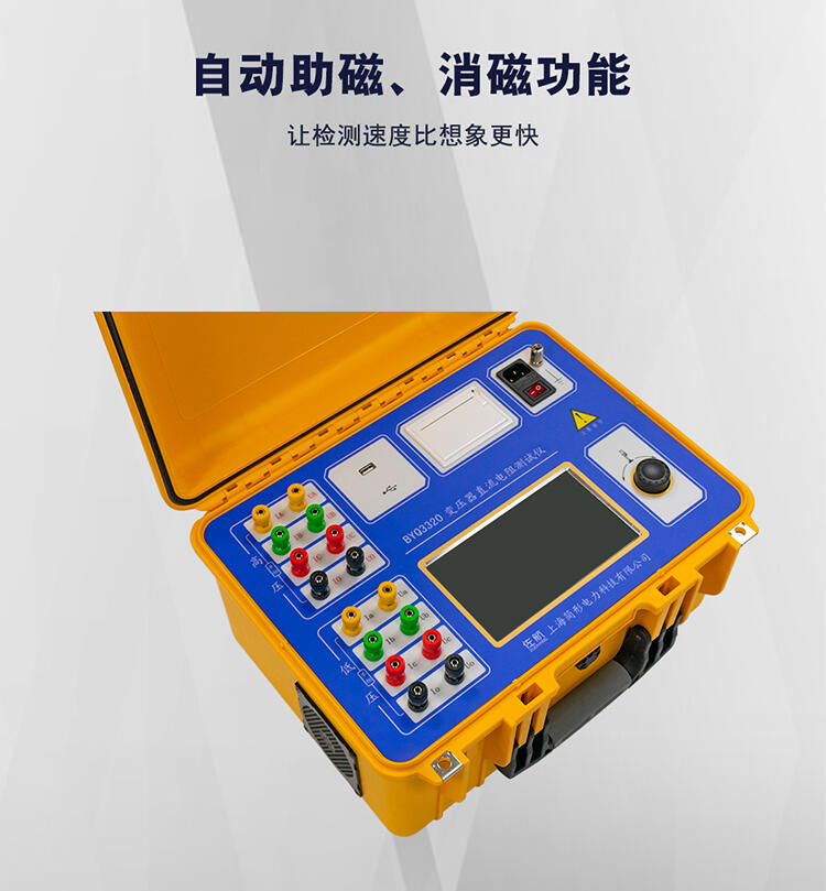 2 测试电源输出电流20A,测试范围0~25kΩ,满足绝大多数变压器的测试需求;并且集助磁法和消磁功能于一体,满足现场试验多种需求。