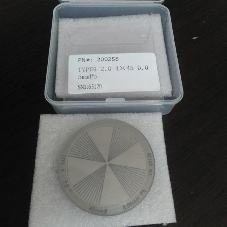 模型基材:铝,纯度大干99.5%,正方形,外尺寸350mmX350mm,厚度20mm+0.1mm影像均匀性:5个,位于测试板四角及正中,正方形,尺寸20mmX20mm几何畸变:视野角标线260mm,300mm,340mm空间标尺:垂直轴,水平轴,分度2mm对比度线性测试孔:6个,直径10mm对比度不透射线标靶:1个,直径10mm。