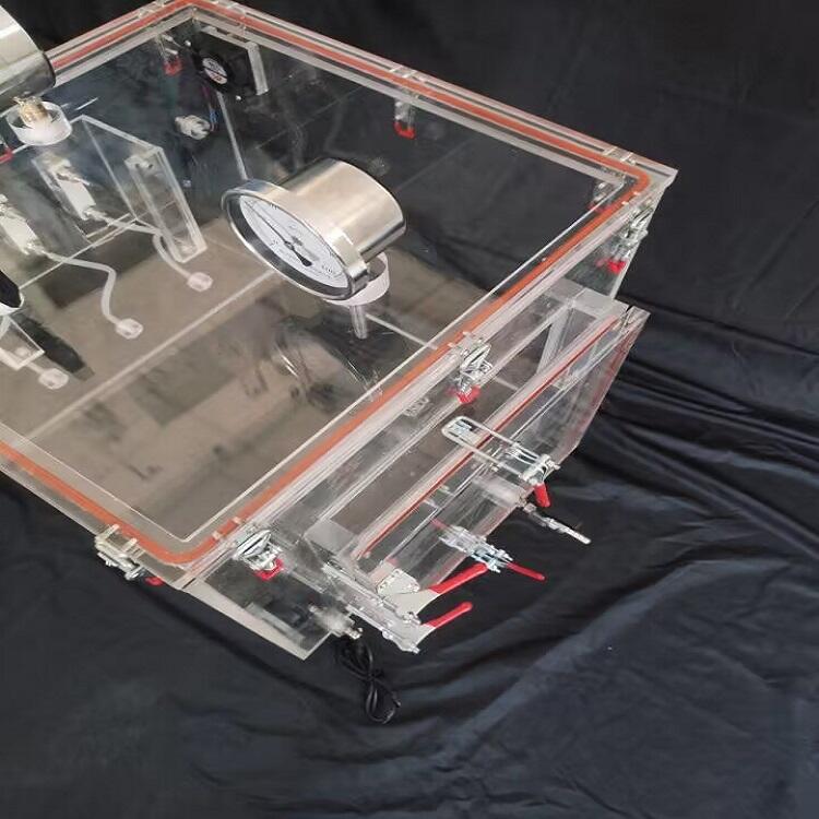 简易厌氧手套箱,亚克力材质,箱体长宽高尺寸:500*600*500 箱体壁厚:可选择5/80/10 毫米单位。箱体的功能和使用和操作,1.不能抽真空2.无物料样品传导仓和传递箱3.可以进行惰性气体置换实验和干燥实验。3.简易隔离实验