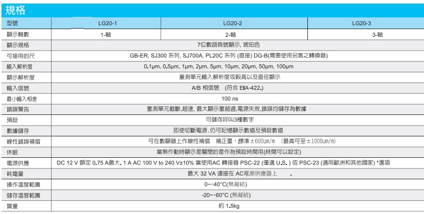 数字显示仪LG20,可选择显示分辨率,接收A/B相信号输入,机床误差补偿,数据储存,预设/召回,防止闪烁。