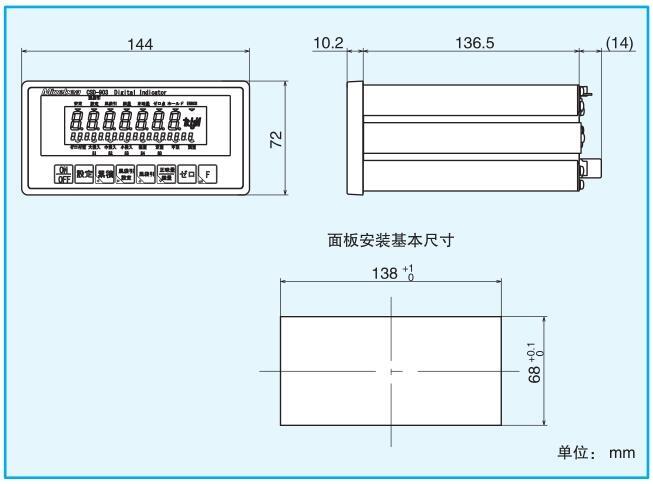 可在无显示、g、kg、t、N、kN、lb之间进行切换(绿色荧光显示管) |