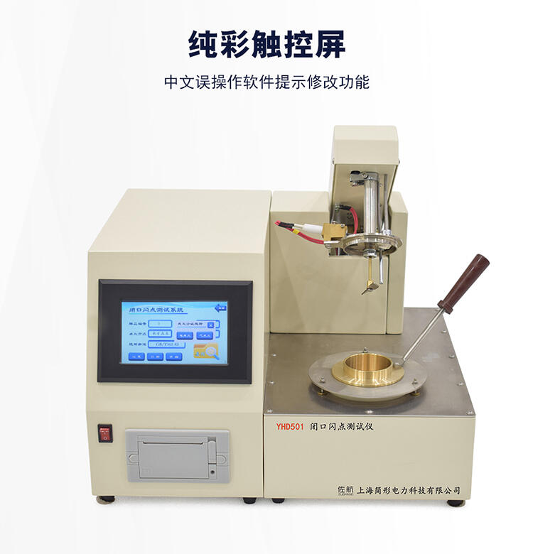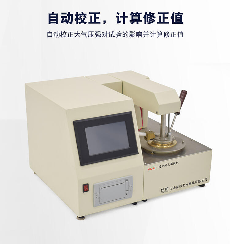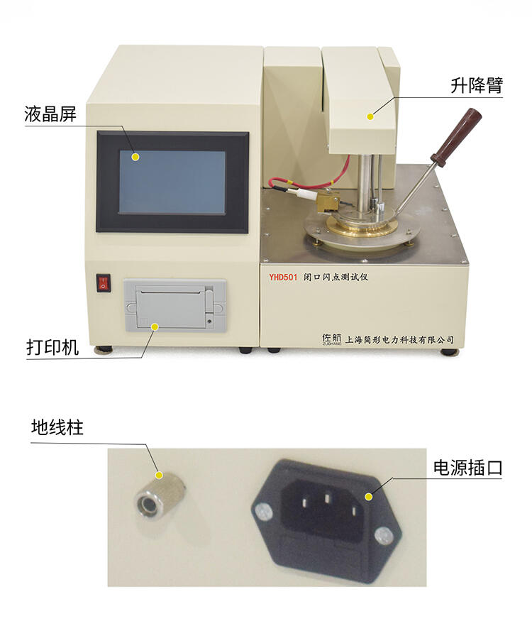 佐航YHD501全自动闭口闪点测试仪,用于测定石油产品的闭口闪点值。采用国外的先进技术,液晶TET纯彩触控屏,全中文显示人机对话界面,对可预值温度、试油标号、大气压强、试验日期等参数,具有提示菜单提示式输入,方便快捷,开放式、模糊控制集成软件,模块化结构,符合GB/T261-2008和GB/T261-83标准。是理想的进口仪器替代产品。广泛应用于铁路,航空,电力,石油行业及科研部门等。