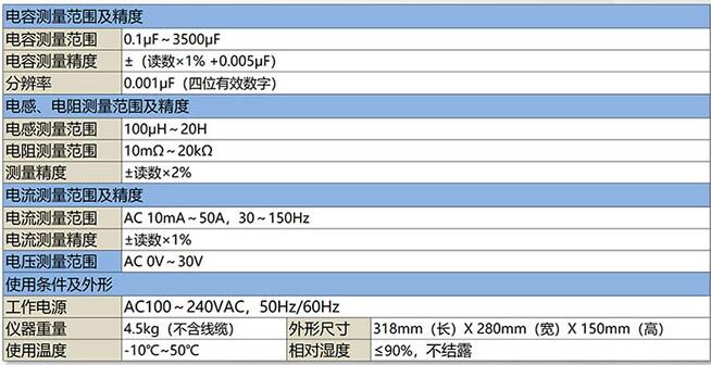 电容测量精度 | ±(读数×1% +0.005μF) | ||