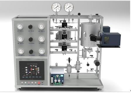 1) 系统中的减压系统,可与反应气钢瓶直接连接,管路配有比例卸荷阀、高精度压力表及压力传感器,所有温度控制点、压力监测点均配有超温、超压报警,自动联锁保护。